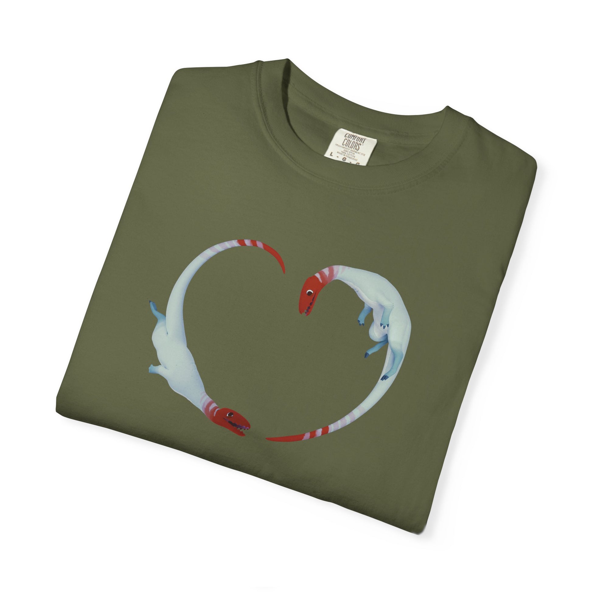 Don't be a fossil and miss out! Grab your Paleo Pines Gumi Heart Coelophysis T-shirt today and: