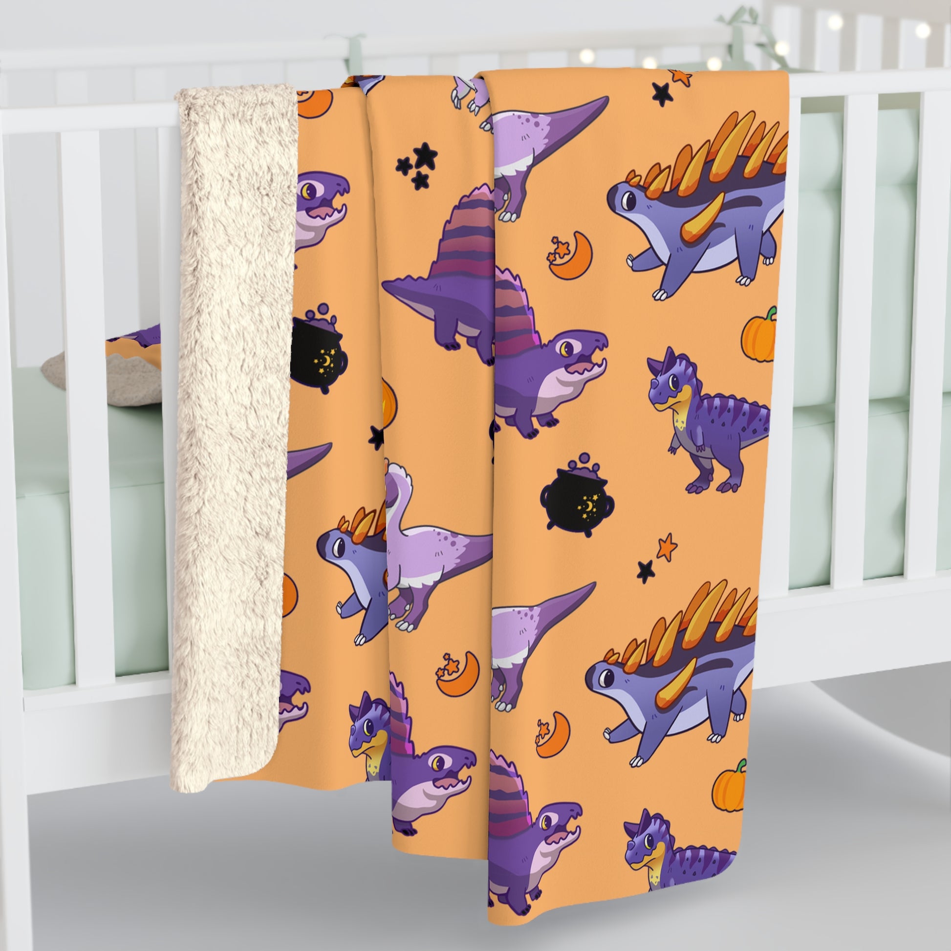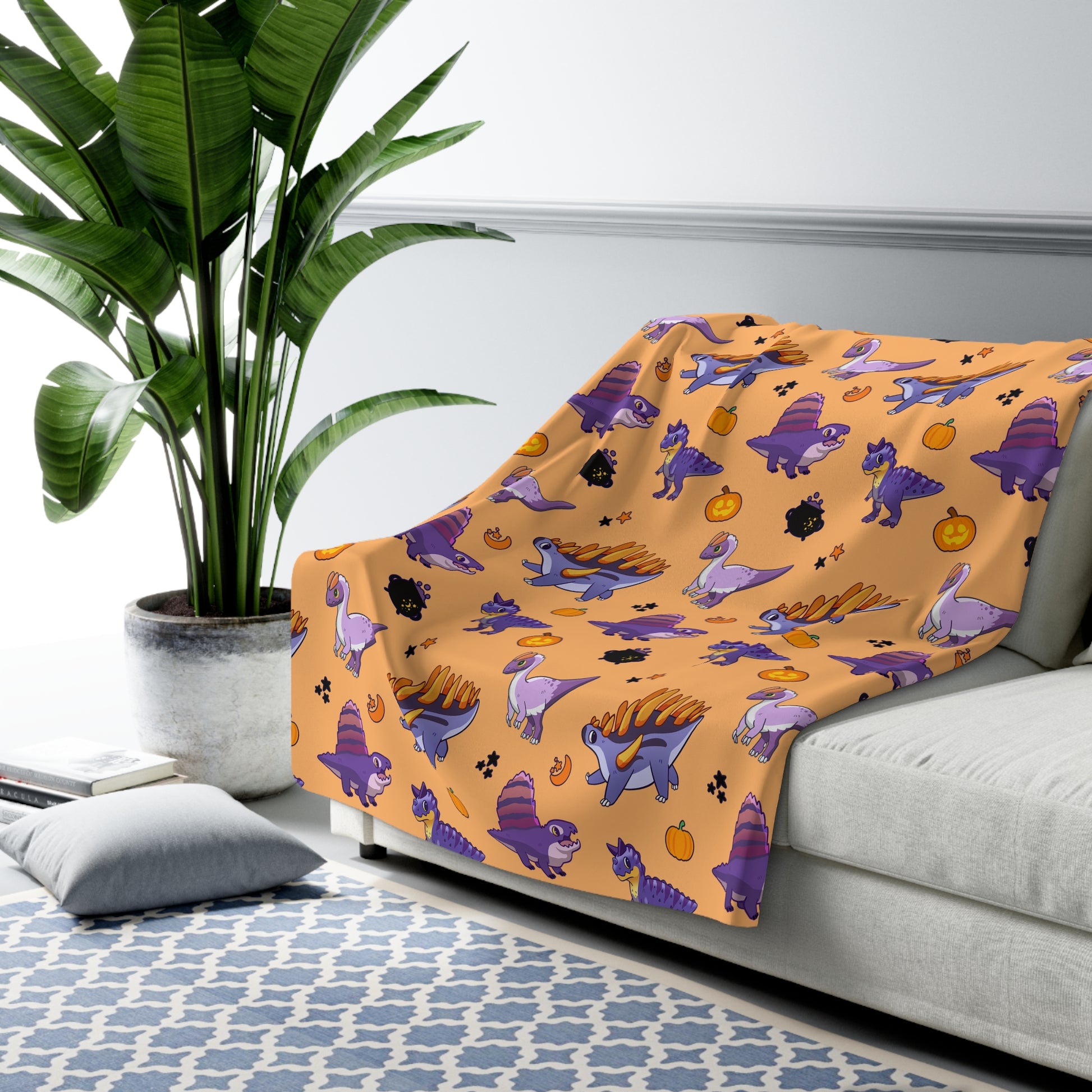 Don't be a fossil and miss out! Grab your Dino-Mite Halloween Dinos Fleece Blanket today and:
